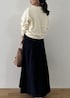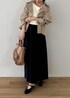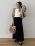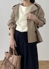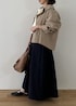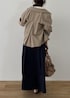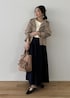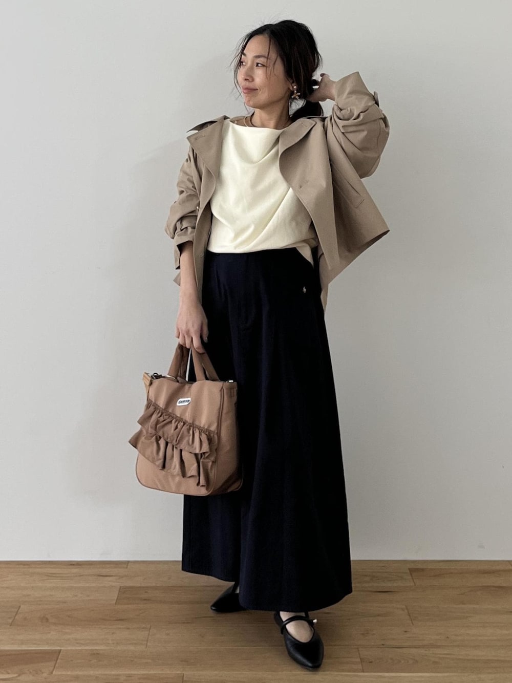 軽やかなベージュアウターに、 白トップス×ネイビースカートでまとめた シンプルだけど雰囲気の出るコーデ。 程よくゆとりのあるシルエットが、 気張らず大人っぽい印象に。 足元はフラットで抜けを出して、 デイリーにもお出かけにも使いやすいスタイリングです。