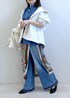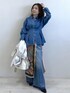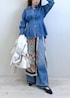 デニムシャツにデニムパンツを合わせた こなれ感のあるデニムスタイル。 シンプルになりがちなデニムコーデも、 柄スカーフをレイヤードすることで 一気に華やかな印象に◎ さらに軽やかなマウンテンパーカーをプラスして 春のお出かけにもぴったりのスタイルに。 いつものデニムコーデに ひと工夫で差がつく大人カジュアルです