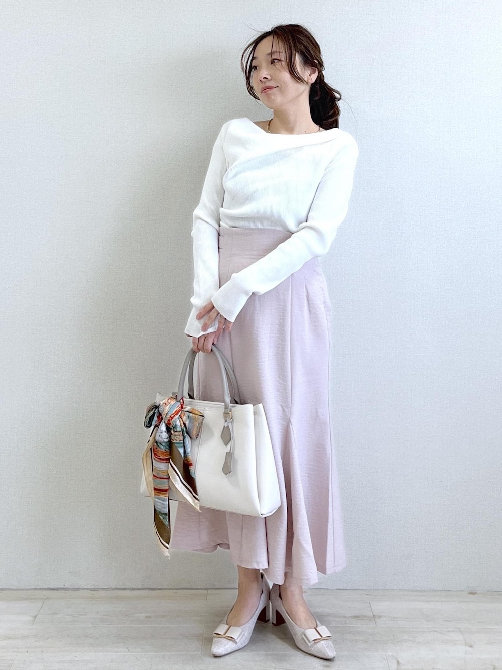 yuka(VIS ルミネ大宮)のパンプス「ハートカットリボンパンプス」を使ったコーディネート