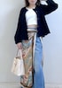 一見シンプルなのに、ちゃんと目を引く理由は デニム×柄スカーフのレイヤードで “ラフなのに女っぽい”が一瞬で完成。 カジュアルになりがちなデニムも、 ニュアンス柄をプラスするだけで一気に格上げ◎ さらに、コンパクトな黒トップスで引き締めてるから 全体のバランスもすっきり! これ、着るだけで「なんかオシャレな人」になれるやつです。