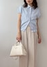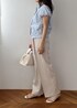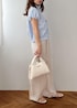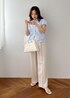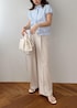 爽やかさときちんと感、どっちも欲しい日に◎ ブルーストライプで清潔感を出しつつ、 ベージュでやわらかくまとめたコーデ。 シンプルだけど好印象に見えるのがポイントです。 迷ったときに頼れる、 間違いない組み合わせです