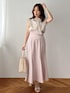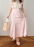 ふんわり揺れるピンクスカートに、 リボンディテールが目を引くブラウスを合わせた 王道フェミニンスタイル 甘くなりすぎないように、 ニュアンスカラーでまとめるのが大人見えのポイント ハイウエスト×マーメイドラインで自然とスタイルアップも 小物はベージュで統一して、全体をやわらかく上品な印象に 「きれいに見せたい日」に選びたくなる好印象コーデです♡