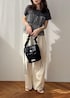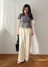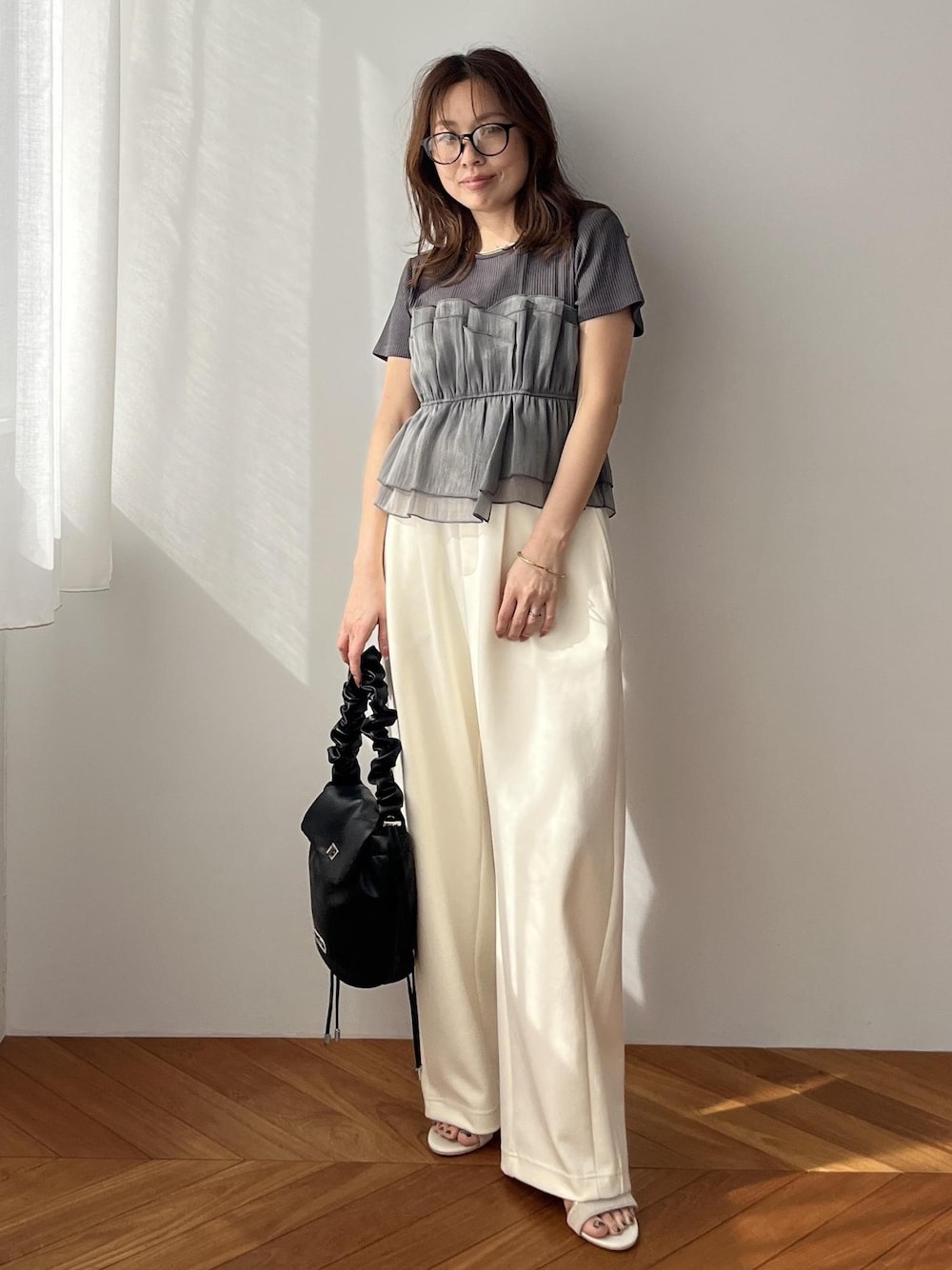 華やかなペプラムデザインも、 グレーでまとめることでぐっと大人っぽい印象に 立体感のあるシルエットで、 自然とスタイルアップが叶うのも嬉しいポイント◎ ボリュームトップスには、 落ち感のあるワイドパンツを合わせてバランスよく スウェット素材なので、程よくリラックス感もプラス! ブラック小物で引き締めれば、 甘さ控えめの洗練コーデに仕上がります