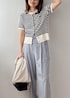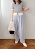 さらっと羽織れる軽やかジャケットに、 ボーダートップスを合わせた大人カジュアルスタイル きちんと感のあるジャケットも、 ボーダーで程よくラフに崩すのが今っぽい◎ 落ち感のあるワイドパンツで、 リラックスしながらもきれい見えをキープ 小物はブラックで締めて、 全体のバランスをぐっと引き締めるのがポイントです!