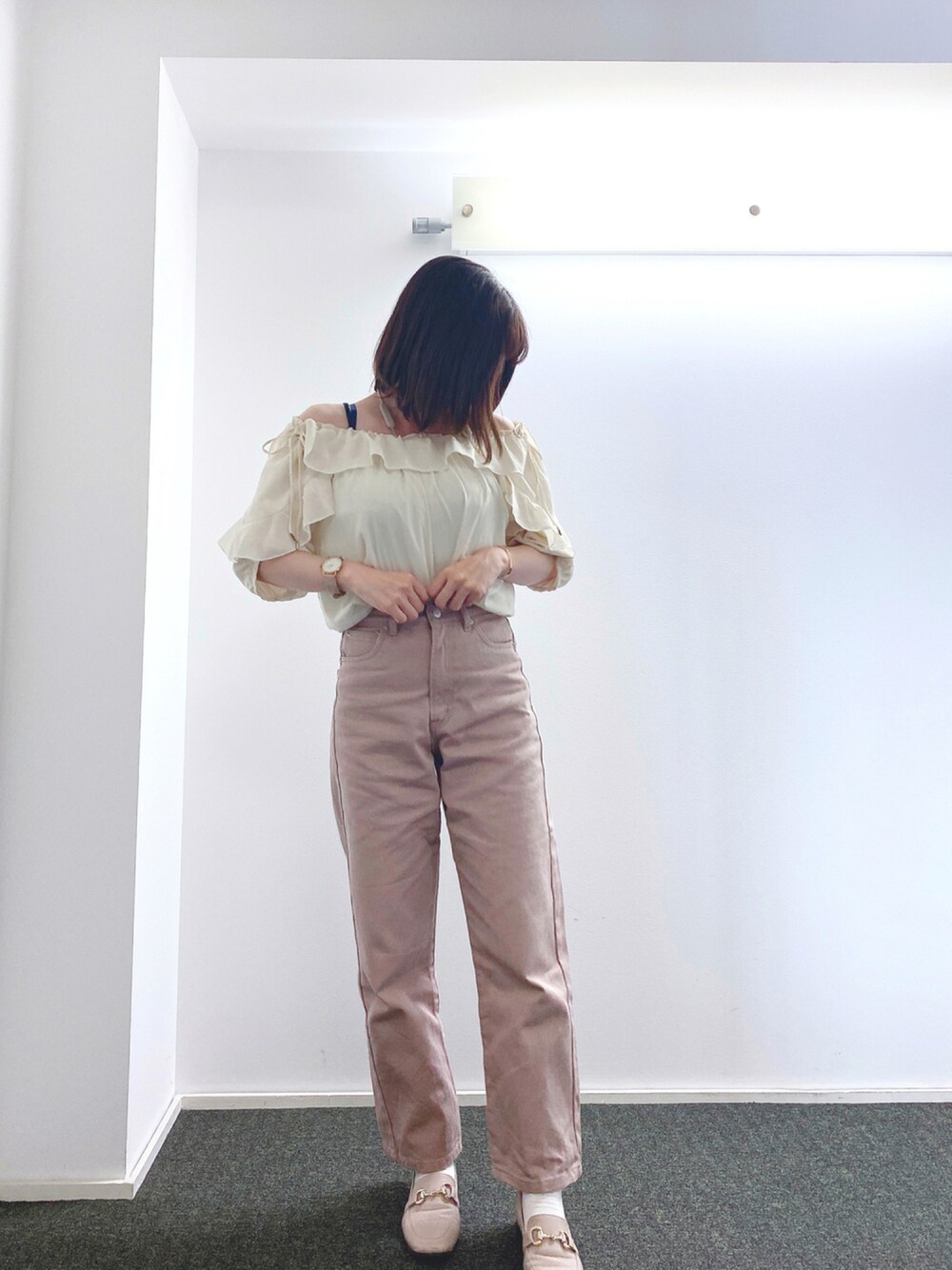 いつもいいね、お気に入りありがとうございます! Instagramもよろしくお願いします☺️ Instagram : yumfash GRLのパンツ優秀です✨ 158cmの私にはサイズMの長さがベストでした!