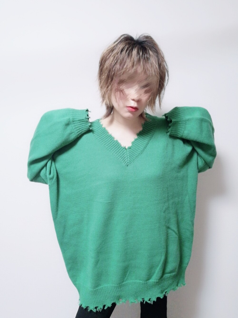 ギャルって感じのお店だけど、シンプルな物はたまにタイプなデザインがあるから寄りがちなお店🤔 ロックな感じのダメージとハッキリしたグリーンがいい Vカットの深さ具合もすき。