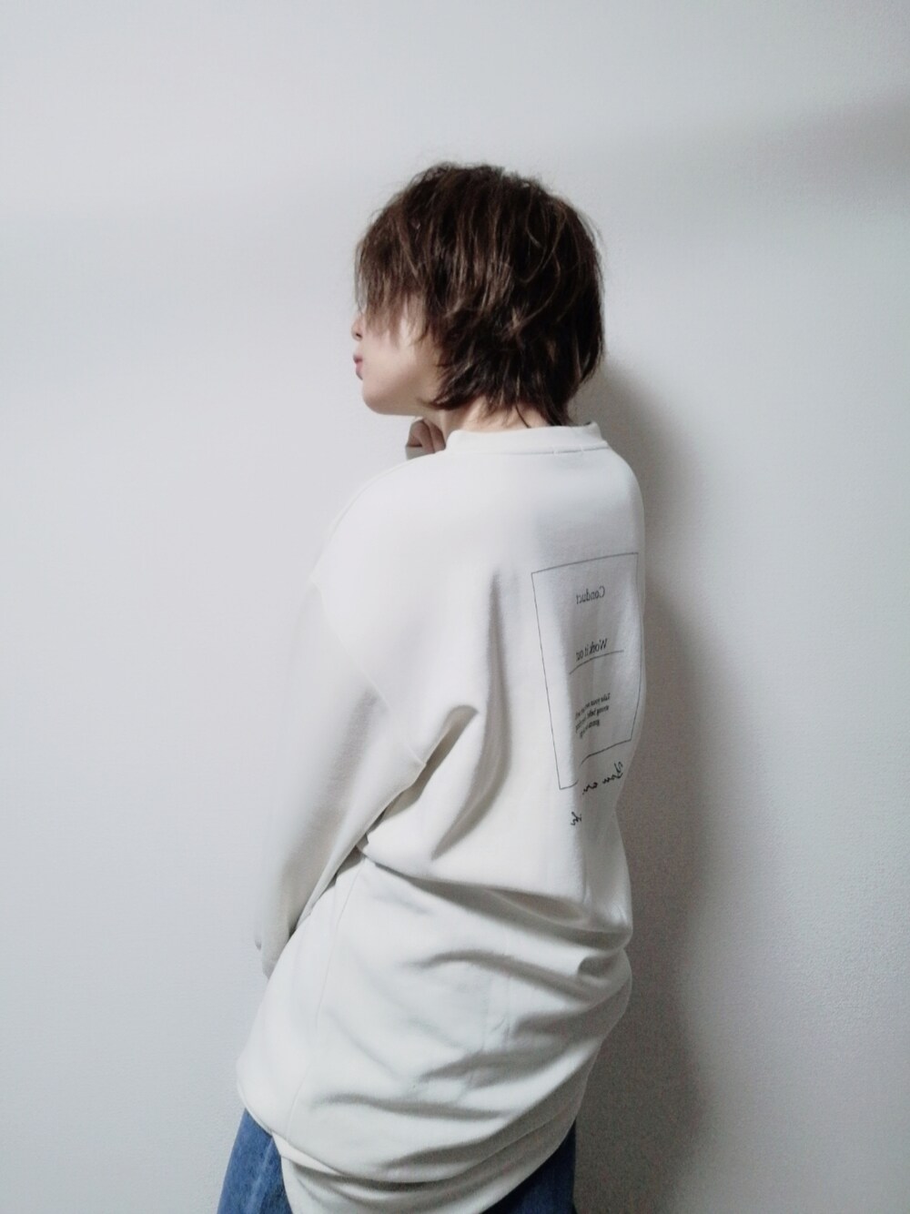 シンプルなバックプリント ワンピースとして販売されてたけど、うまく織り込ませてオーバーサイズ風に着るのがいい🤔