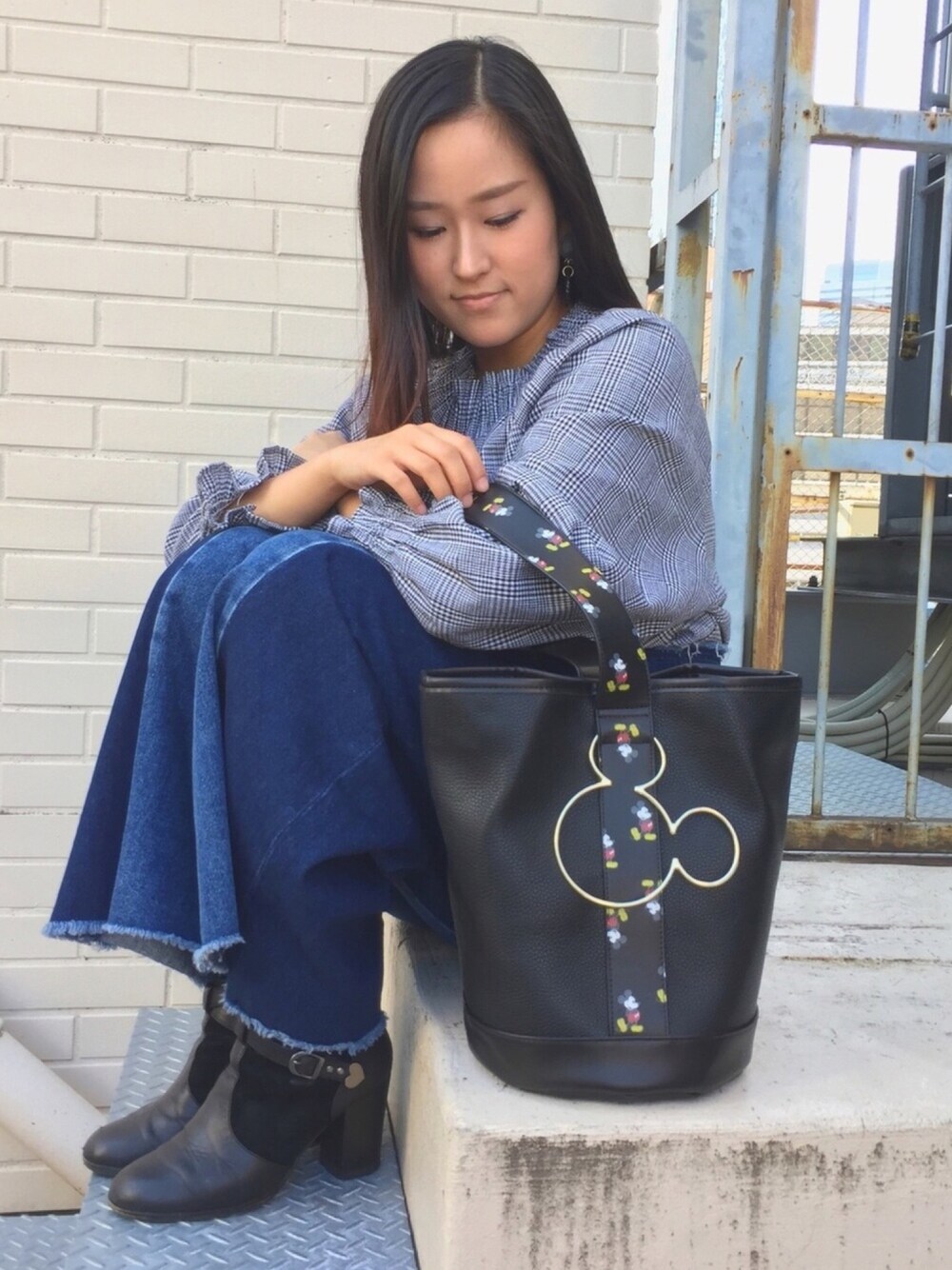 ミッキーリングバッグは、ミッキーなのに大人っぽいからフォーマルな雰囲気にもなっちゃう✨ ライトベージュも綺麗系に合わせられて可愛いですよ🙈💓 私は大人クールにブラックで🙋 pants:ZARA boots:ANNA SUI