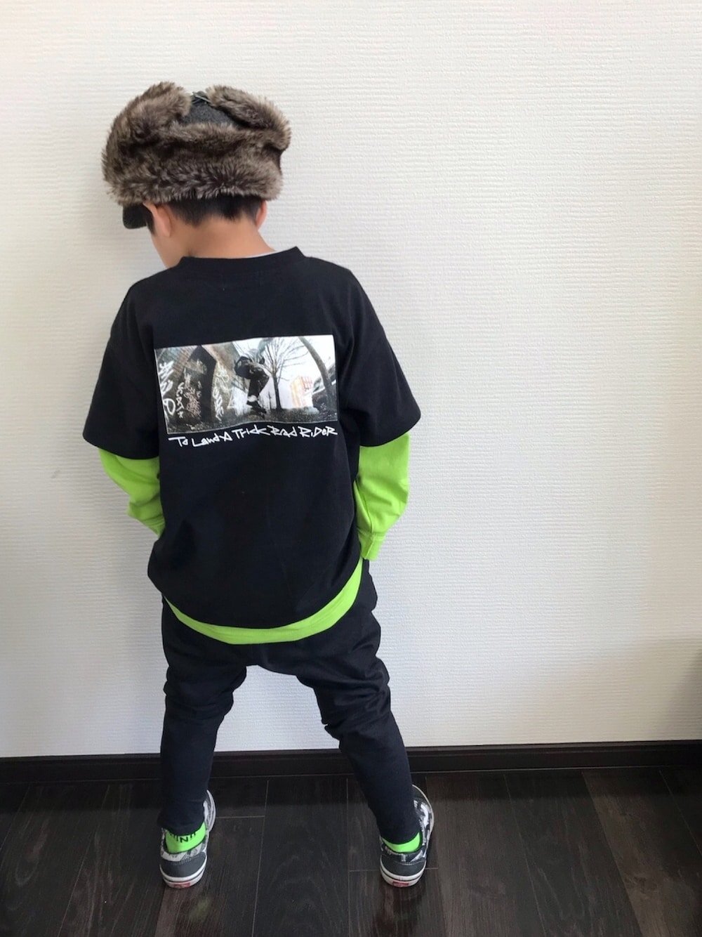 あさっぴー☆のキャップ「KIDSフェイクファーフライトキャップ」を使ったコーディネート