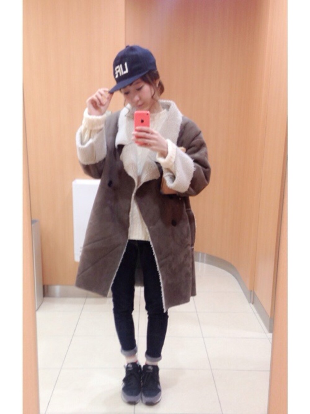 moeのムートンコートを使ったコーディネート