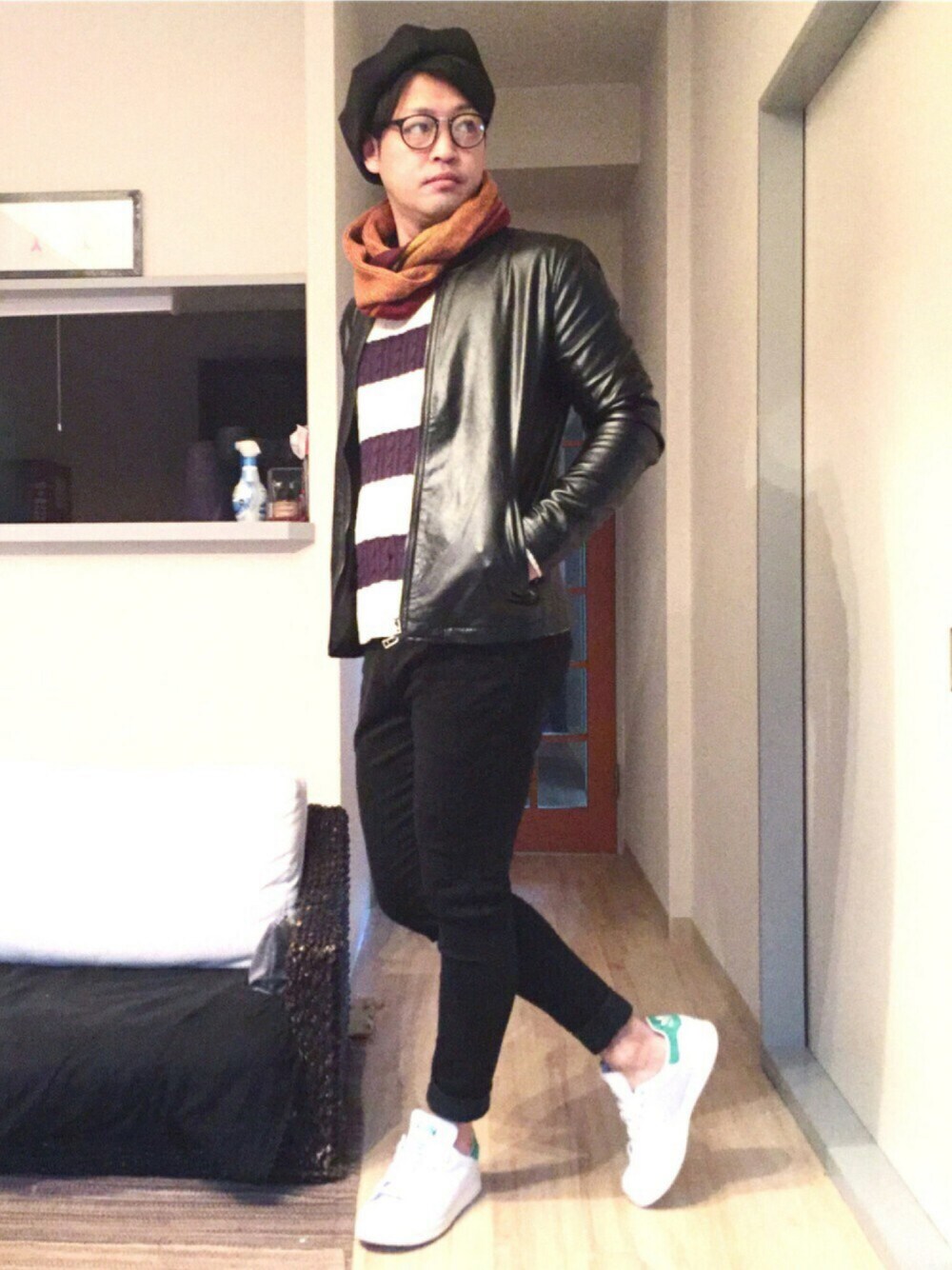 みなさまお疲れ様です(^ω^) いつもありがとうございます😊✨ 今日は暑いくらいの京都です☀️ 明日は寒くなるようですね!! 24日から東京に出張ですが、関東方面は 雪って噂を聞いたよ(xдx;) ぼくの地元、滋賀県長浜では、 雪の重さで学校の体育館の屋根が 押しつぶされたことがあるくらい 雪が降ってました((´∀`))笑 最近は、あんまり降らないようだけど そんな感じで 寒くなってきたので コーデは、ニット、レザー、スヌードで あったかく、でも 足下寒そうコーデです(^ω^)