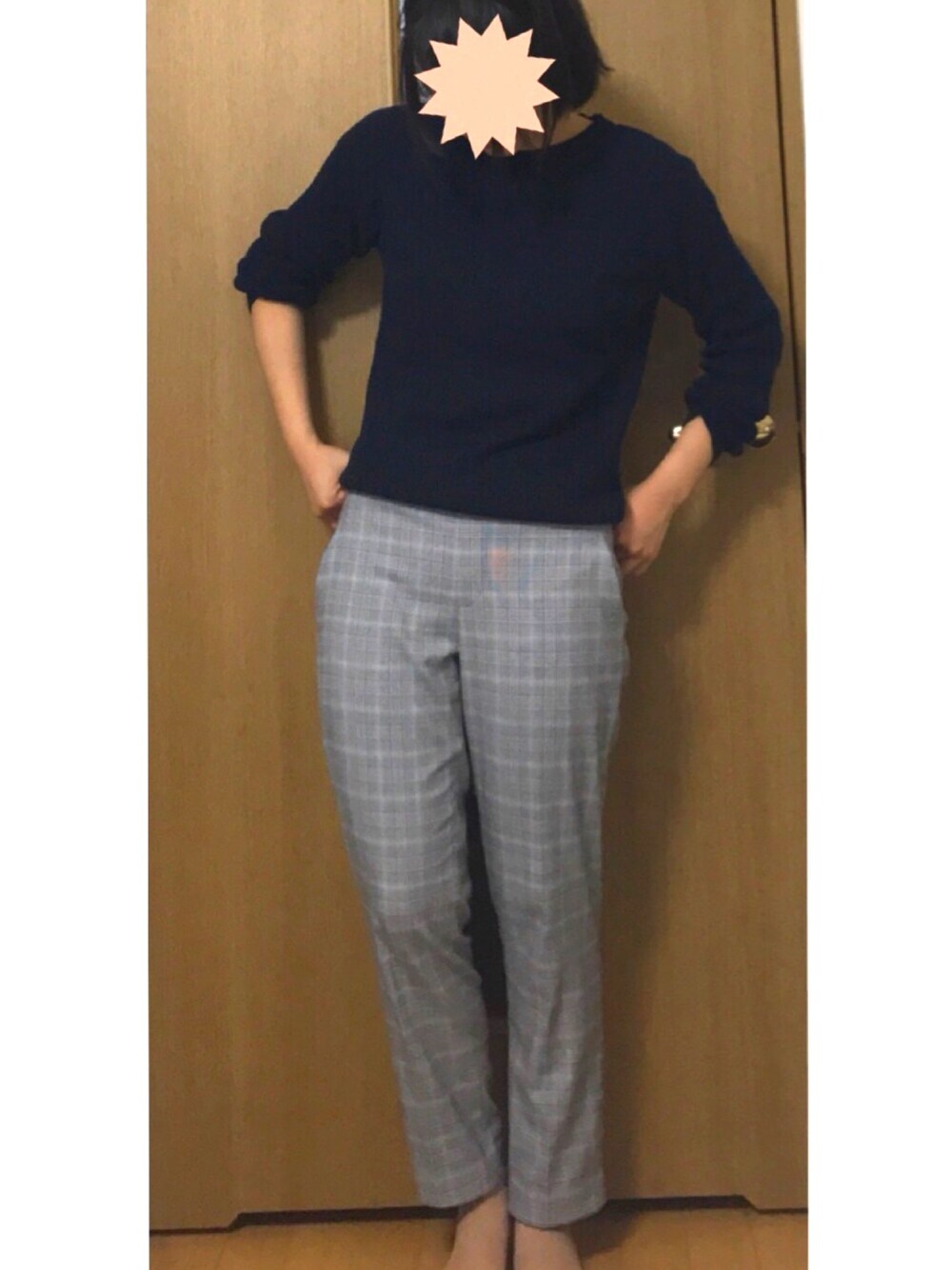 ネイビーのニットは見た目より薄手で使い勝手よいです、とても。