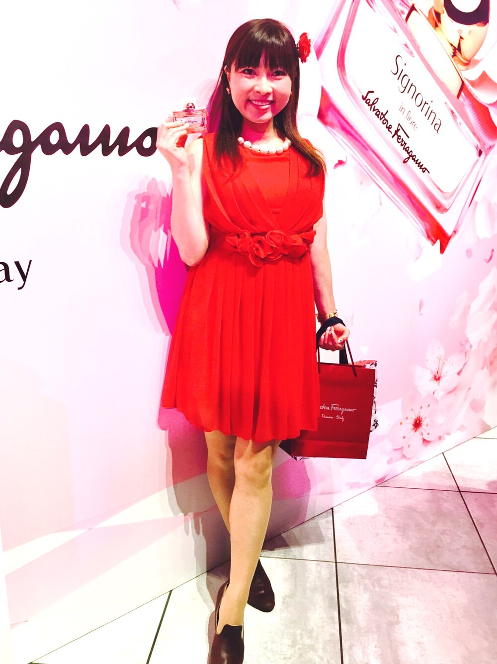 フェラガモ様のフレグランスの新作発表会のパーティーにお招きいただきました! 赤いドレスは超プチプラコーデです❤️ フレグランスは3/1日に新発売になるそうです。 とてもいい香りでーす❤️桜も入ってるの🌸