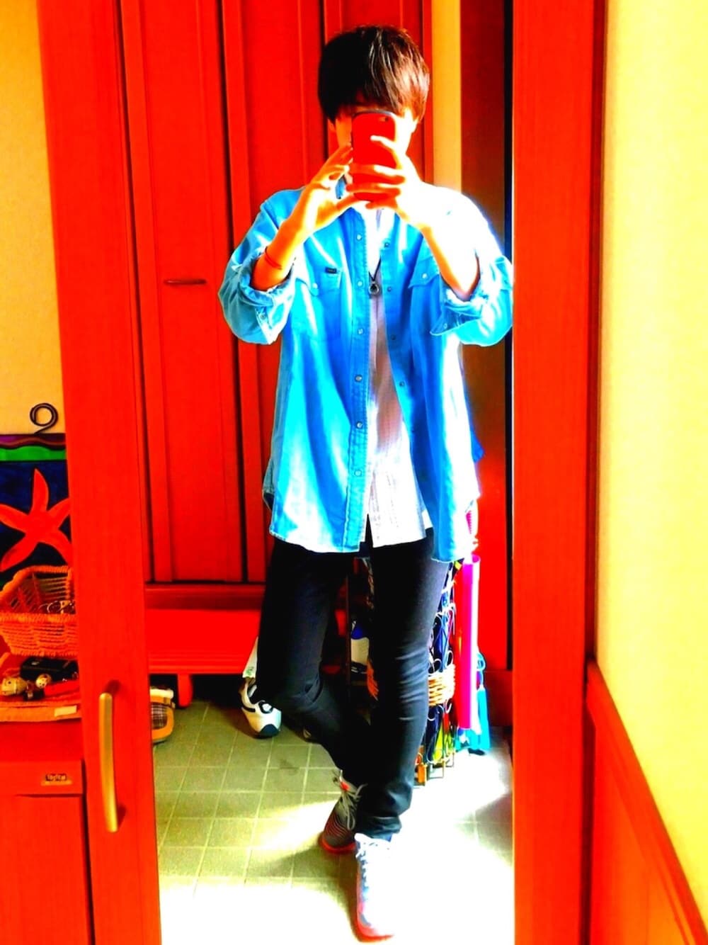 休日のラフなコーデです。 シャツとシャツを着ています。 個人的にとても気に入っています!! 前回に続きdjhondaのシャツを着てみました