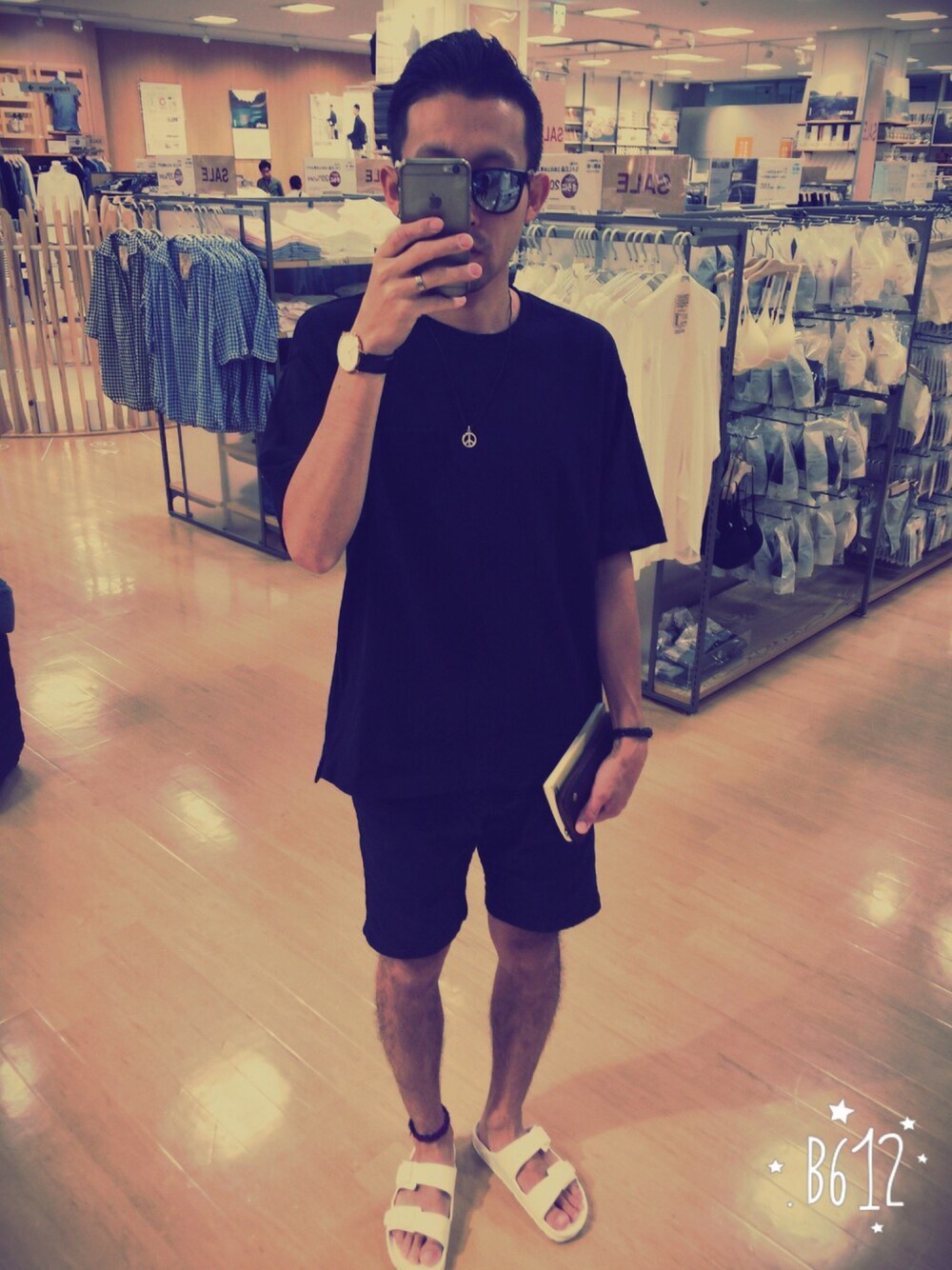 黒ずくめ… あ! サンダル白や…笑