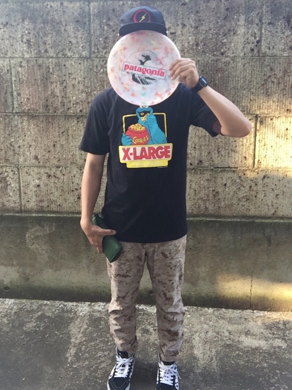 いつでも石壁と同化できるコーデ フリスビー持ち歩くコーデ