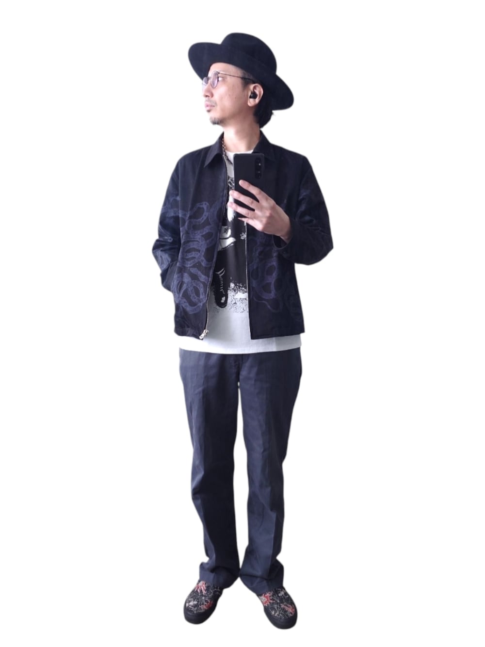 TシャツはrancidのバンドT 海外購入でロゴ無いので合わせやすいです ジャケットはCALEEの蛇柄 ハットもCALEEのでサイズ感も合ってきました