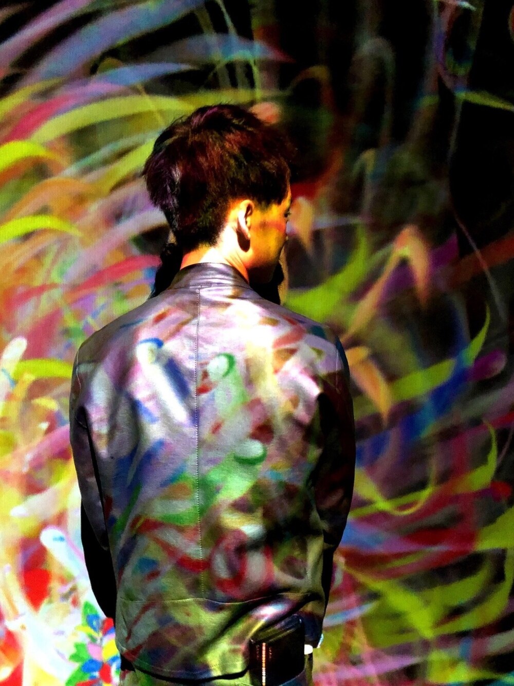 ライダースに映る鮮やかな色。