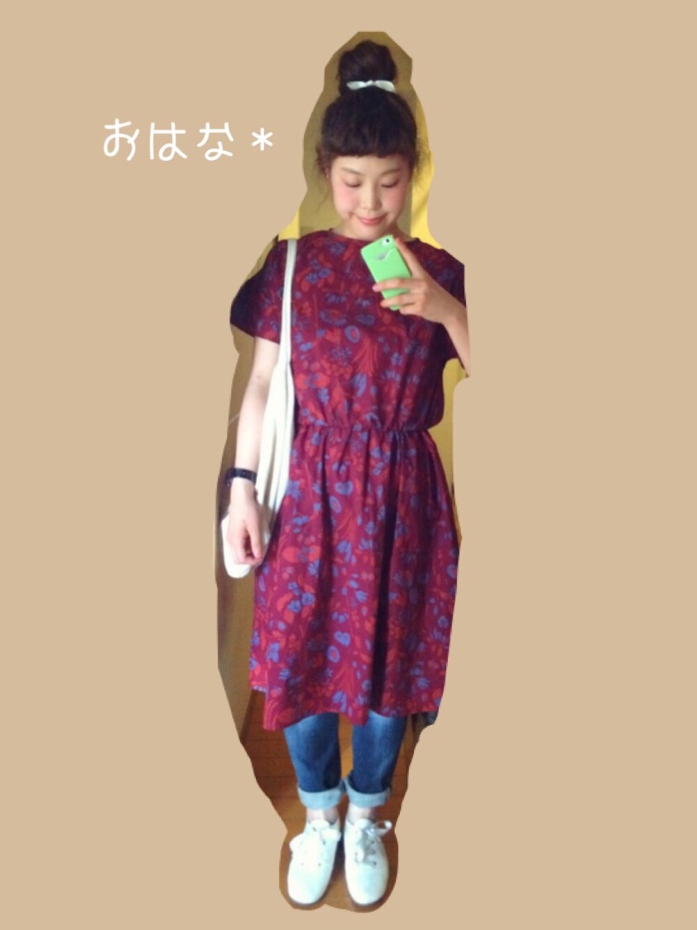 おはな*のワンピース「なつかしい植物 ウエストギャザーワンピース」を使ったコーディネート