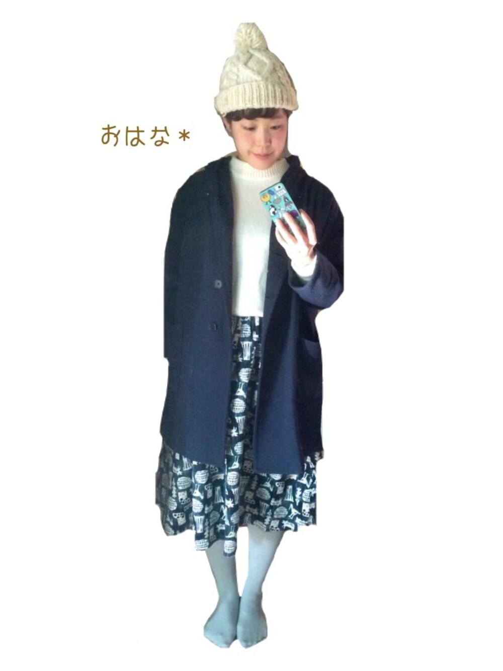 おはな*のスカート「誰かが描いた生き物プリント ロングスカート」を使ったコーディネート