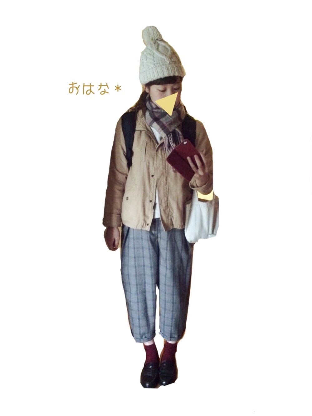 こんばんは* いいね、SAVE、Follow ありがとうございます! ▶︎しりとり 「アウター」B.L.U.E. マフラーは高校生の時から使ってる イーストボーイのチェックマフラー/// イーストボーイとか懐かし〜 チェックパンツにローファーで 物的にスクールスタイルやoO