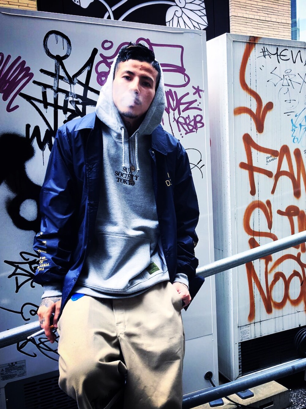 Felipe Fumio Kikutaのナイロンジャケット「COACH JACKET-THE FACTS:-」を使ったコーディネート