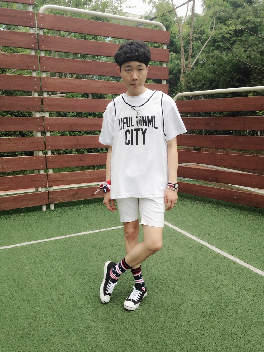 이기빈のTシャツ/カットソー「LIFUL MINIMAL CITY MESH SINGLET wh」を使ったコーディネート