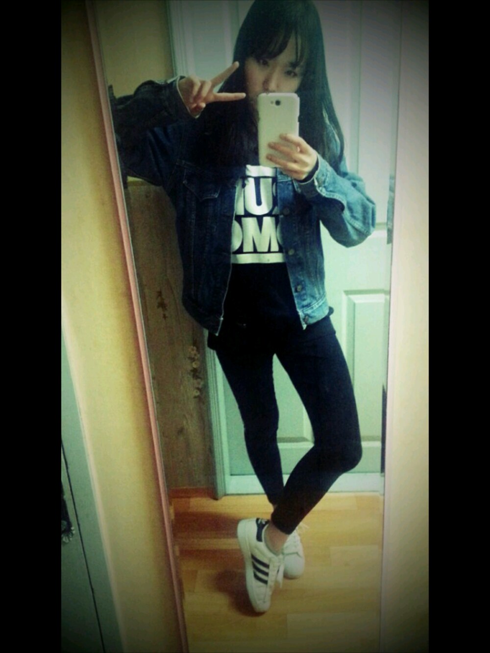 아디다스 슈퍼스타, 청자켓, 아디다스검정후드, 레깅스 이러고 입고나갔는데 오늘 너뭊추워썽ㅜ