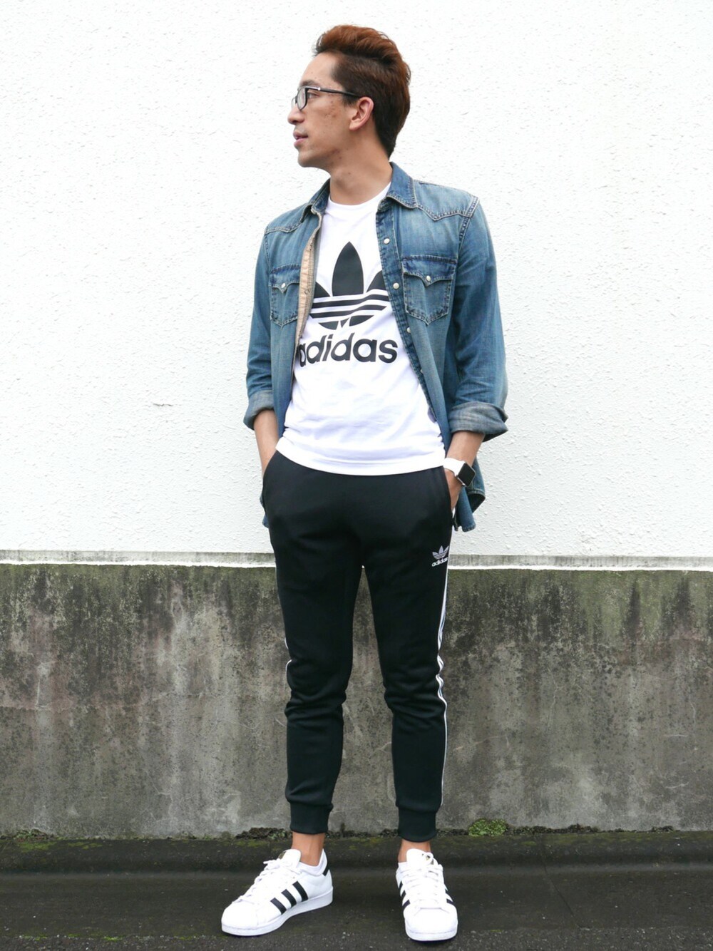 今日は体育館へ行きました。⛹🏅 雲や小雨、最近天気が良くないので外で出かける時はライトデニムジャケットにしました。☔️🍂 運動するのでTシャツとジョガーパンツにしました。アディダスさんの服です。その服はダンスとかヨガとかいいです。もっと運動するならラーニング服のほうがいいです。 カラーパレット: 青空・白・黒。🎨 オススメ: Indoor. 🏀 Top: Denim shirt by American Eagles T-shirt: by Adidas Watch: Apple Watch Bottom: by Adidas Shoes: Superstar by Adidas