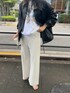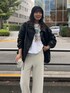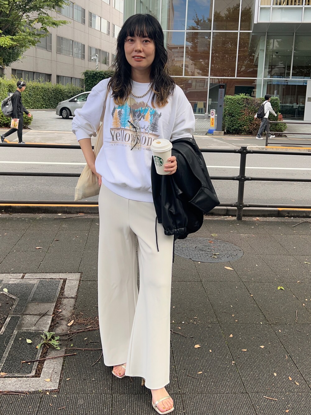 スウェットはどこか昔懐かしいプリントで 古着のような雰囲気があります。 オールホワイトコーデも 暗くなりがちな秋冬におすすめのコーディネートです! フェイクレザーコーチJKの隙間から チラッと覗いても可愛いですよね! ジャケットは意外と軽くて柔らかいですよ。 風邪を通さないのでコートを出す前まで活躍するアウターです!