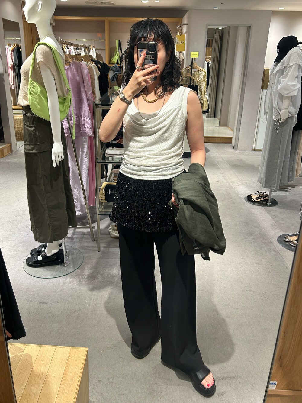 TOKUMURA_161cm(SHENERY有楽町店)のタンクトップ「【インナーにもおすすめ◎】フライスタンクトップ」を使ったコーディネート