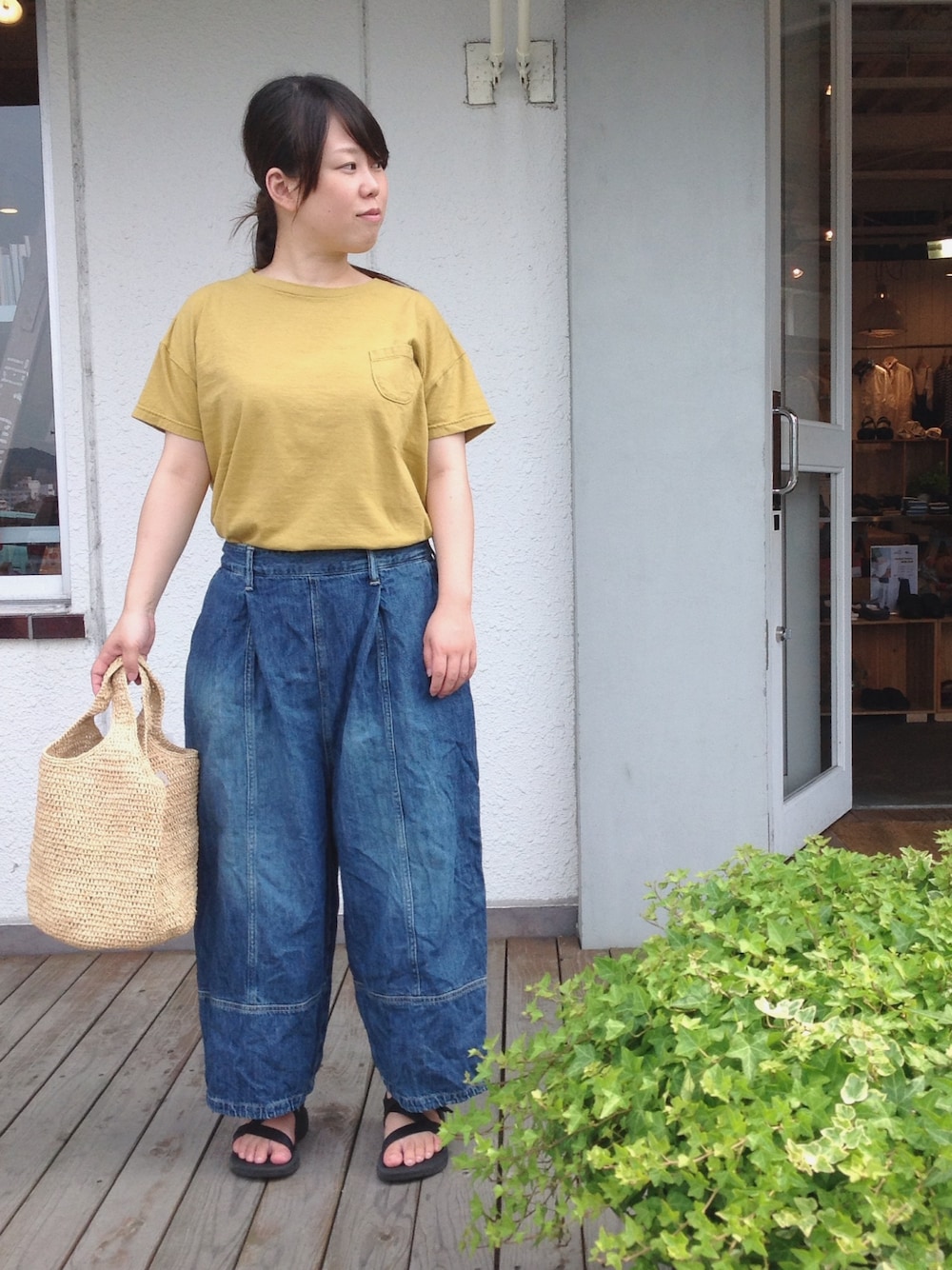 D_MALL児島のTシャツ/カットソー「[OMNIGOD / オムニゴッド] ラフィー天竺半袖マニッシュポケットTシャツ」を使ったコーディネート