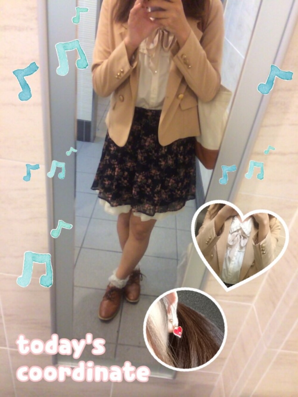 また茶色くなっちゃった でもスカートは黒に花柄 そのスカートは夏服 衣替えしないといけないなぁ ハートのイヤリングお気に入り そして今日はツインテール気分