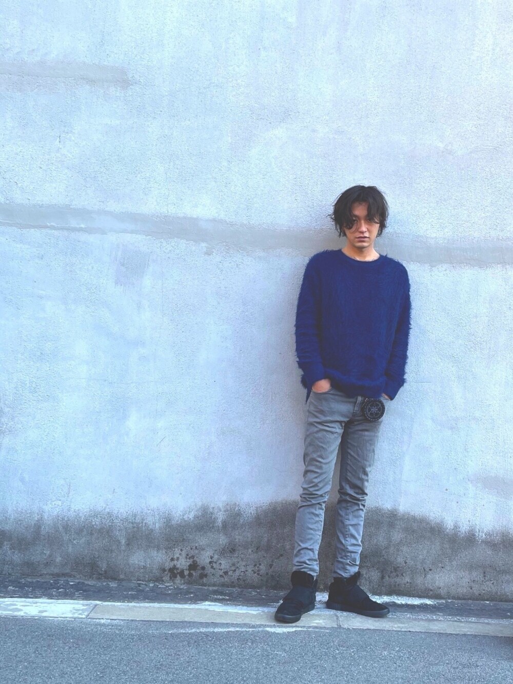 dmmdotcomのニット/セーター「【NUMBER (N)INE】《別注》フェザー ファー ヤーン ニット ワイド ボーダー クルーネック プルオーバー」を使ったコーディネート