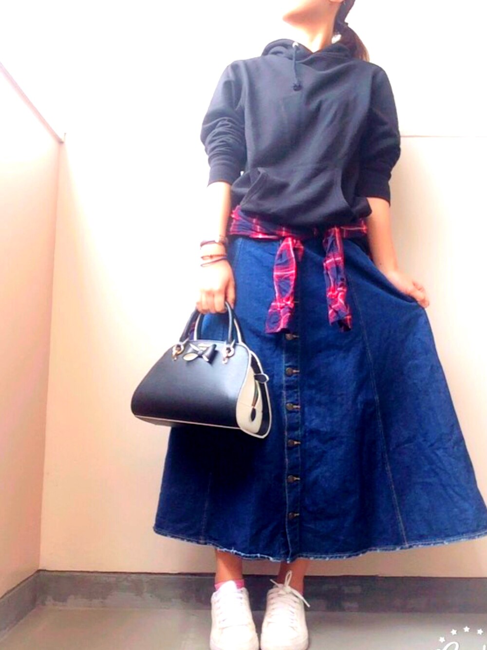 Naaのデニムスカート「デニムロングスカート」を使ったコーディネート