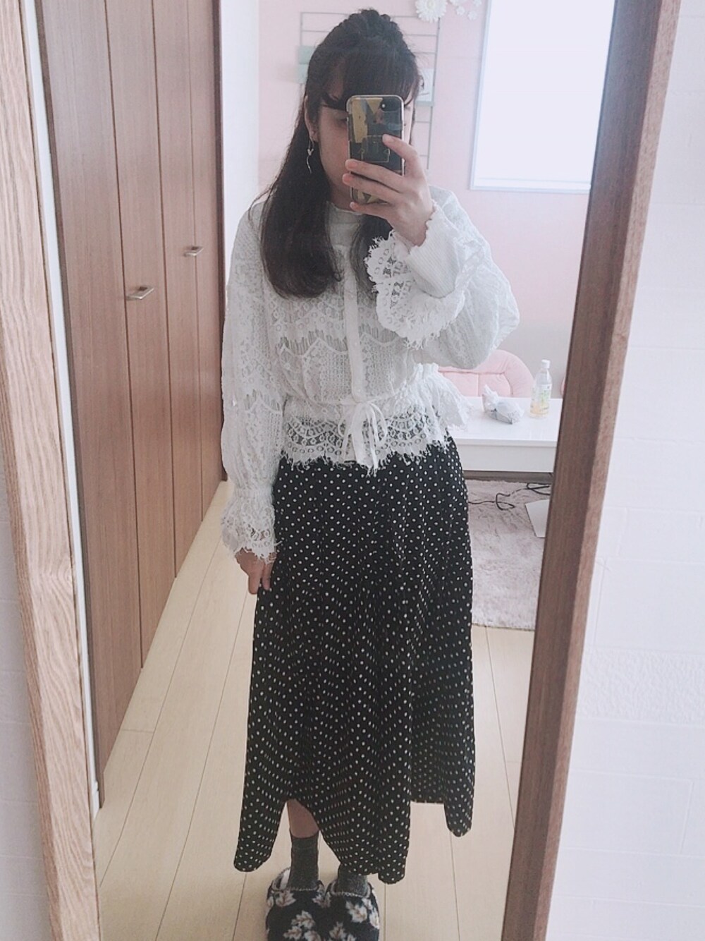 umi**のシャツ/ブラウス「刺繍レースVネックブラウス」を使ったコーディネート