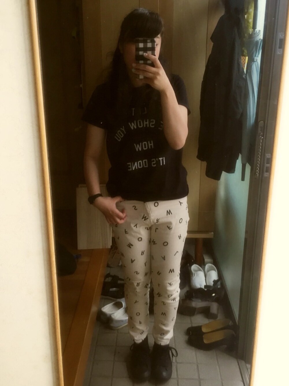 シンプルにTシャツにパンツ! 動きやすさ重視で。 今日はあんまり時間ないのに寝坊しやがった上に遅刻(°_°)! 電話切るんじゃなかった〜 もうほんとやだっ お天気もいまいちだし(´・_・`)