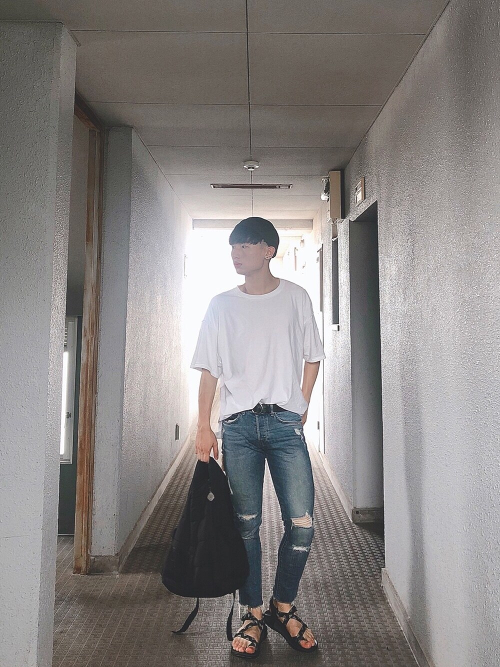 こんにちは🌞 お久しぶりでーす!! 今日は夏の超シンプルなコーデで ダメージジーンズと白tシャツはいつも合わせてやすいですね!シンプルなアイテムの上で、柄のあるサンダルをポイントにしました!後はロールキャップとリングベルトです! いいね👍してくれると大変に嬉しいです😆