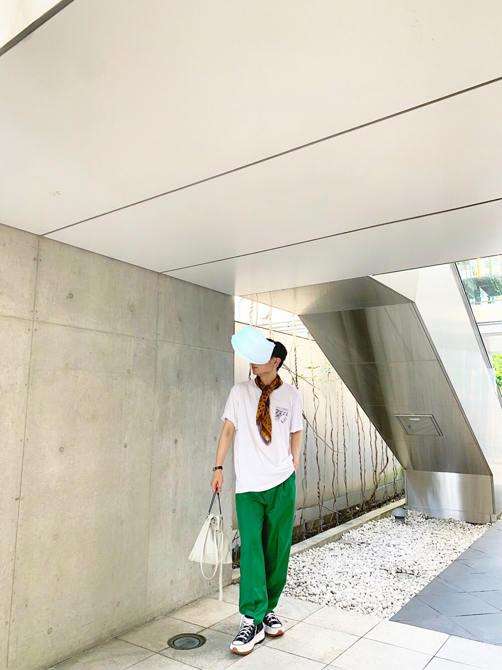 ミンミンのスラックス「【@hidekanagao_×bohmalコラボ】タックセンタープレスワイドパンツ」を使ったコーディネート