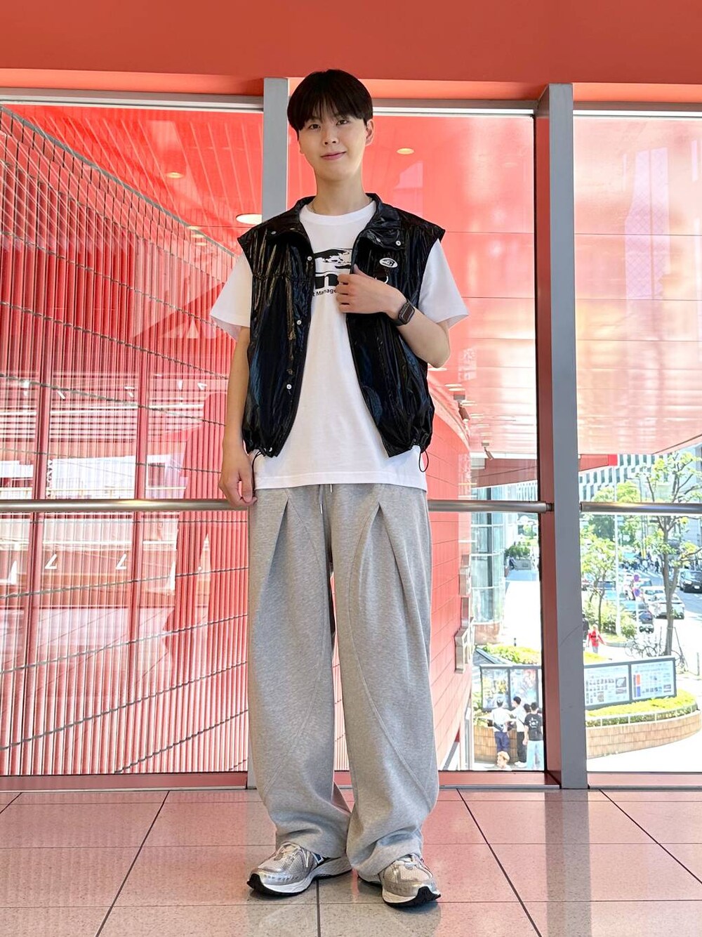 メタリックのナイロンベストが個性があって周りと差をつけれます!!!🎶シンプルなコーデにアクセントで使ってみてください^_^💕 スウェットパンツは再入荷で大人気なのでお早めに‼️