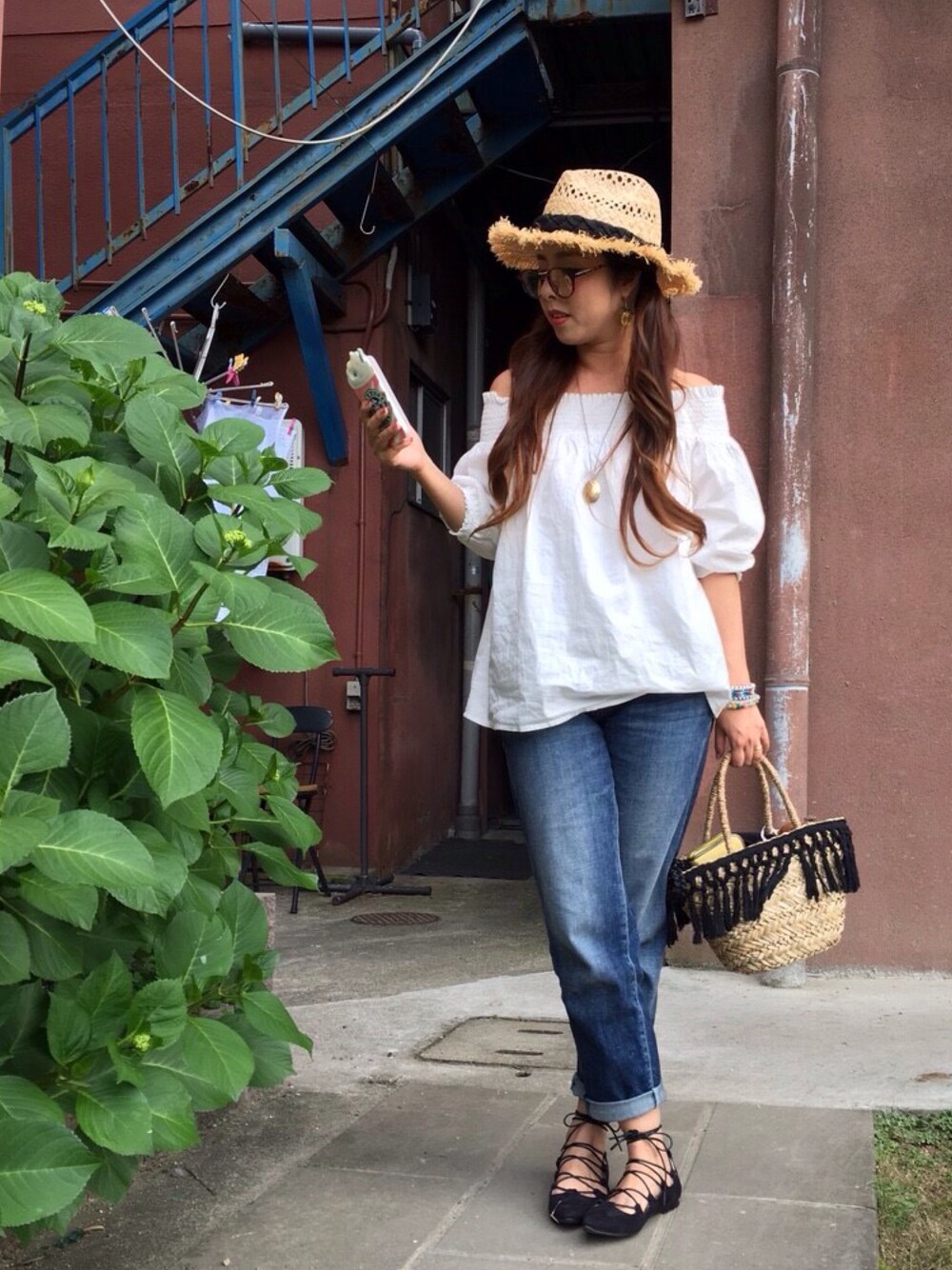 LOVEのシャツ/ブラウス「・シャーリングオフショルダーブラウス」を使ったコーディネート