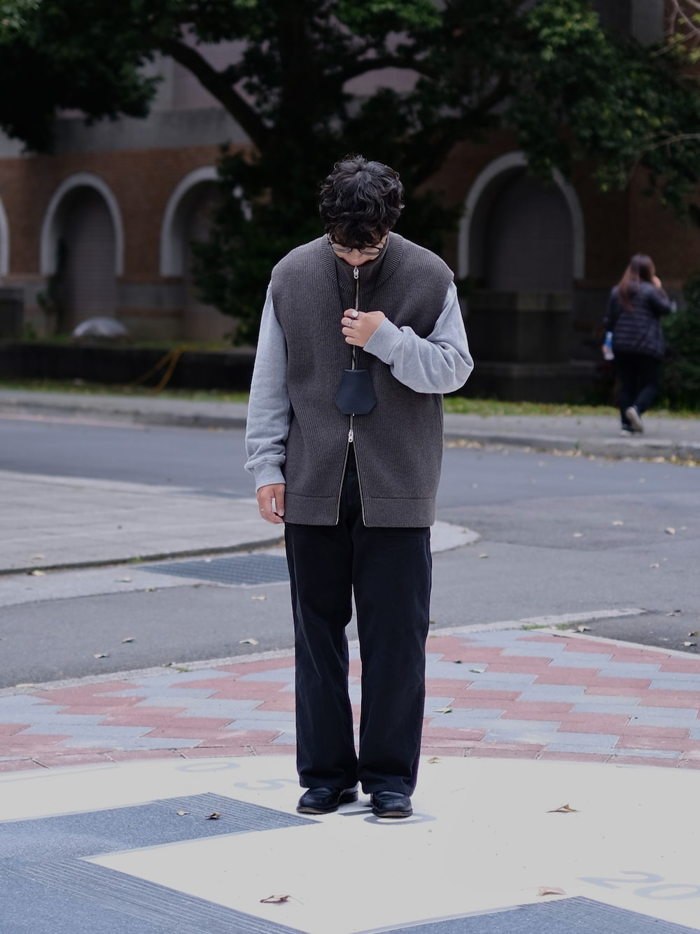 Gray · · · vest: benine9 (M) sweat: SUMARI (1) pants: CIOTA (4) shoes: Jalan Sriwijaya (7.5) acc: COMORO