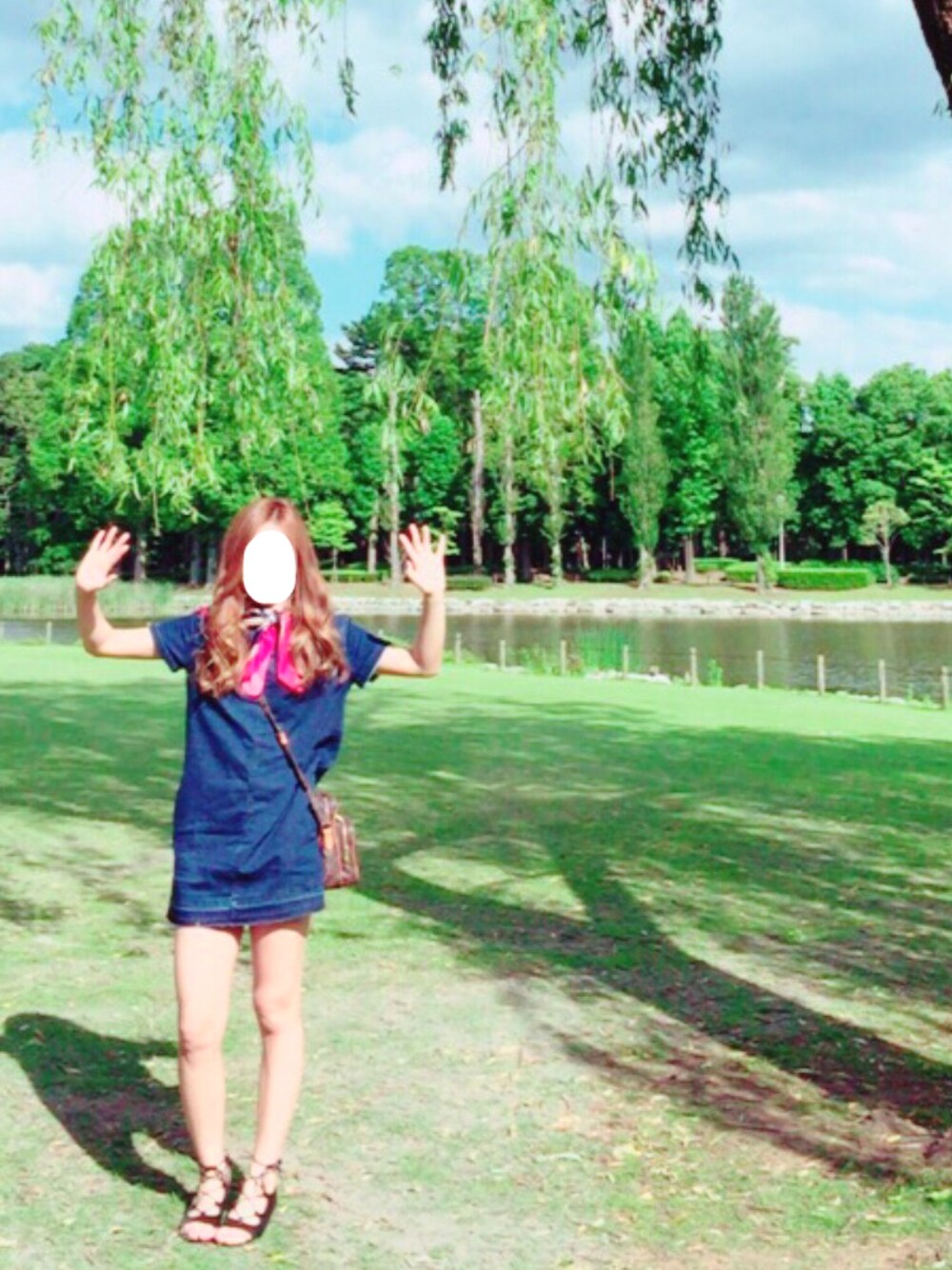 友達とオソロのデニムワンピ💕 かわいいけど公園にはむかないコーデww スカーフは友達からの誕プレ! あざーす(((o(*゚▽゚*)o)))