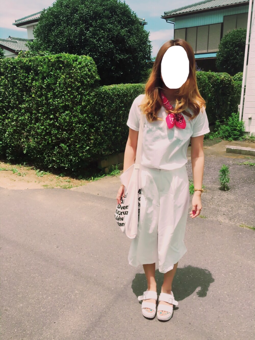 オールホワイトコーデ🍉 暑がりなので薄手でサラッと着れるのが好きです。 夏は白ばっか買っちゃいます😞