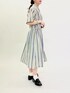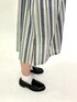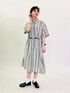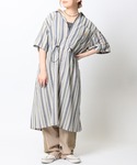ストライプ柄が涼しげな夏コーデ! 前開きなので羽織りとしても大活躍します! さらっとした素材なので、 1枚で着たい場合はミニ丈のボトムやペチコートと合わせるのがおすすめです◎