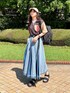 ゆーみん(DOUBLENAME 新宿店)のデニムスカート「ジア刷り加工デニムプリーツスカート」を使ったコーディネート