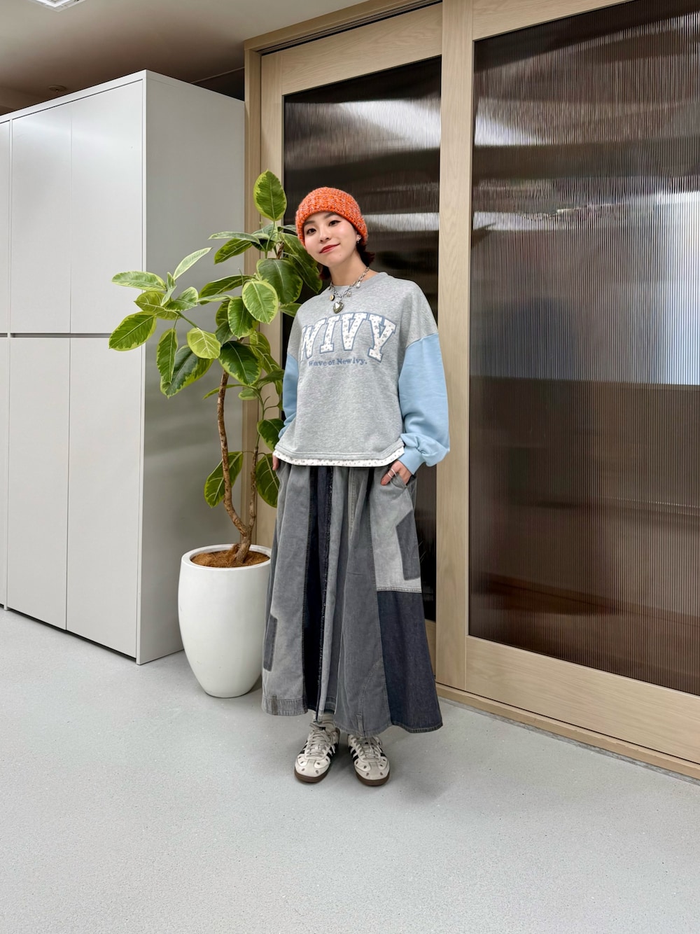 花柄が可愛い春コーデ!🌼 カジュアルすぎないデザインなのでガーリーコーデにもおすすめ♪ リメイク風のデニムスカートは組み合わせるだけでオシャレ見え間違いなし!😎 ウエストゴム仕様でとても履きやすいですよ♪