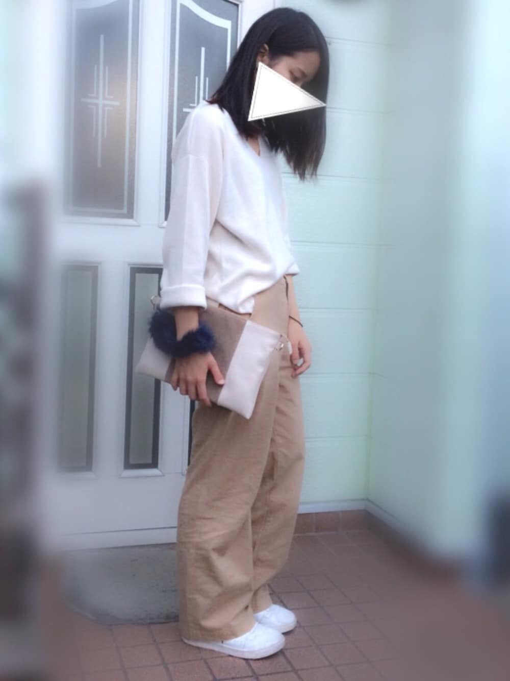 すぅのニット/セーター「12GハーフミラノVネックプルオーバー」を使ったコーディネート