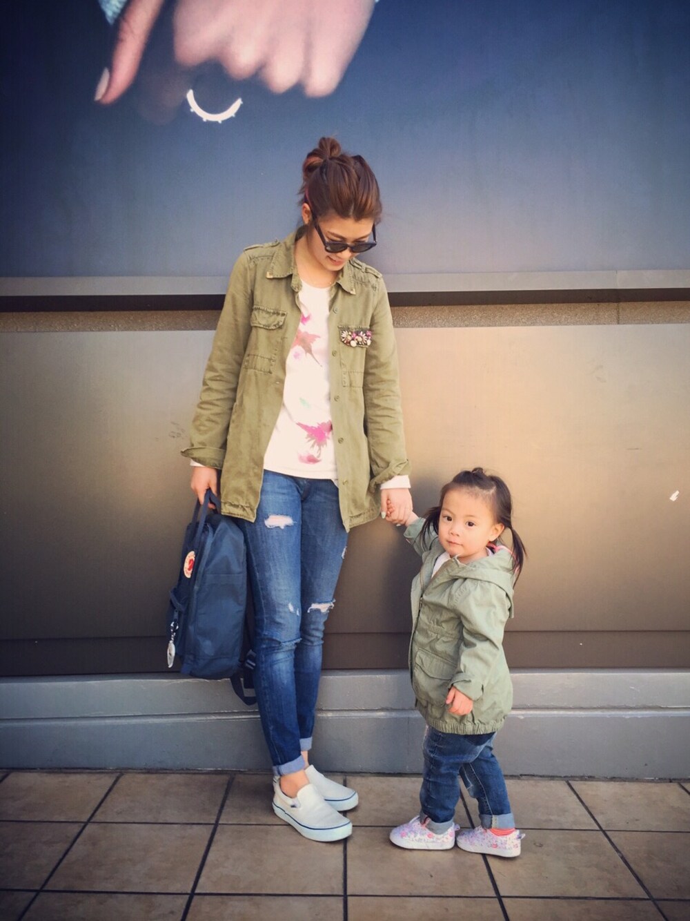 ムスメ ミリタリージャケット: OLD NAVY ブラウス : H&M デニムパンツ : H&M シューズ : H&M
