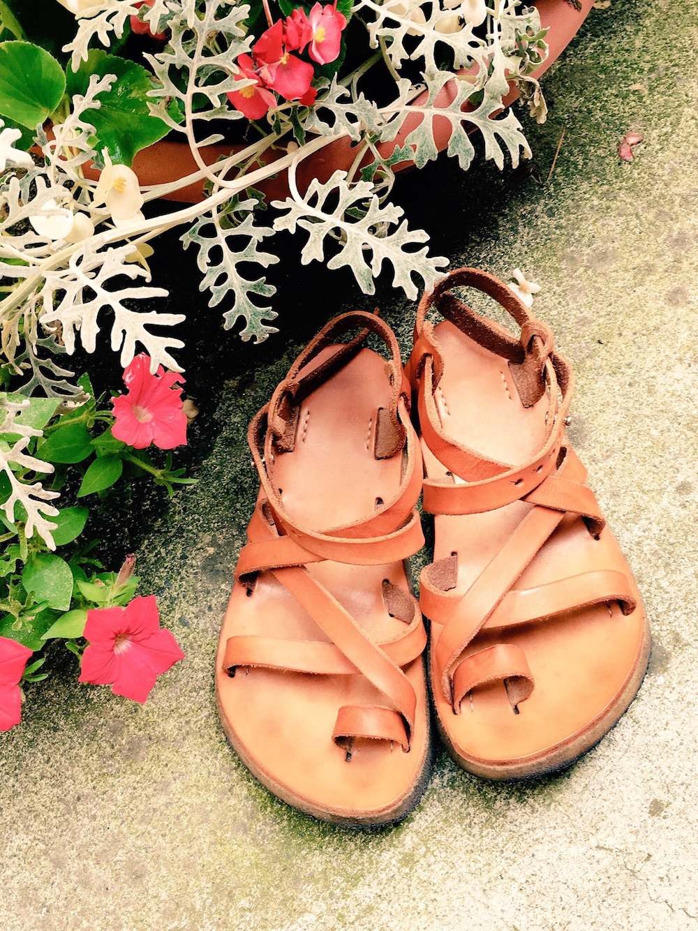 数年前につくったサンダル.ミンクオイルで磨いて大切に毎年履いています.